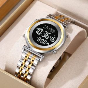 Introducing the Qibla Azan Watch, the ultimate Muslim prayer time wristwatch designed to help you stay punctual with your daily prayers. Whether at home, work, or traveling, this modern Islamic timepiece ensures you never miss a prayer with its built-in Adhan (prayer time alarm), Qibla direction finder, Hijri & Gregorian calendar, and more!